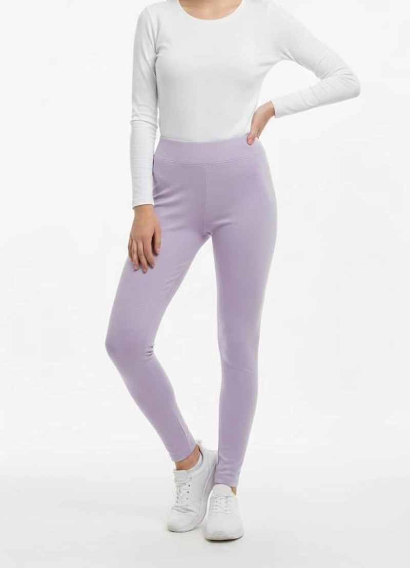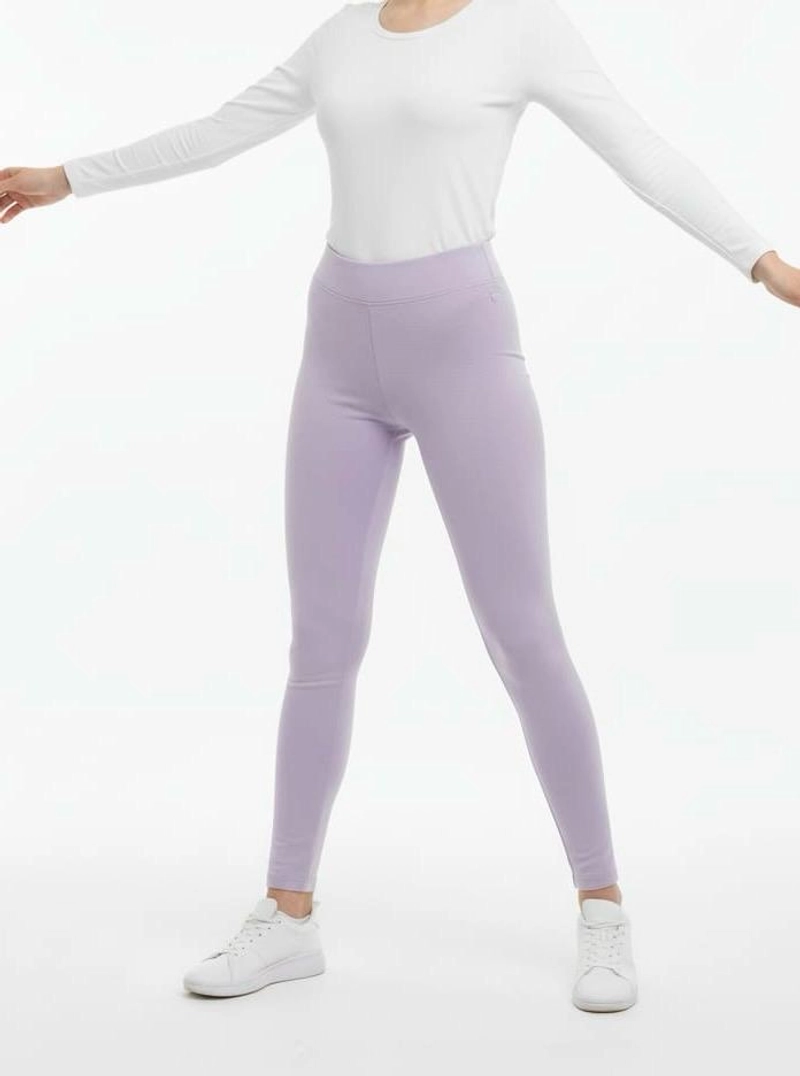 冬季保暖紧身裤 | 淡紫色高腰女士 100% 纯棉保暖紧身裤