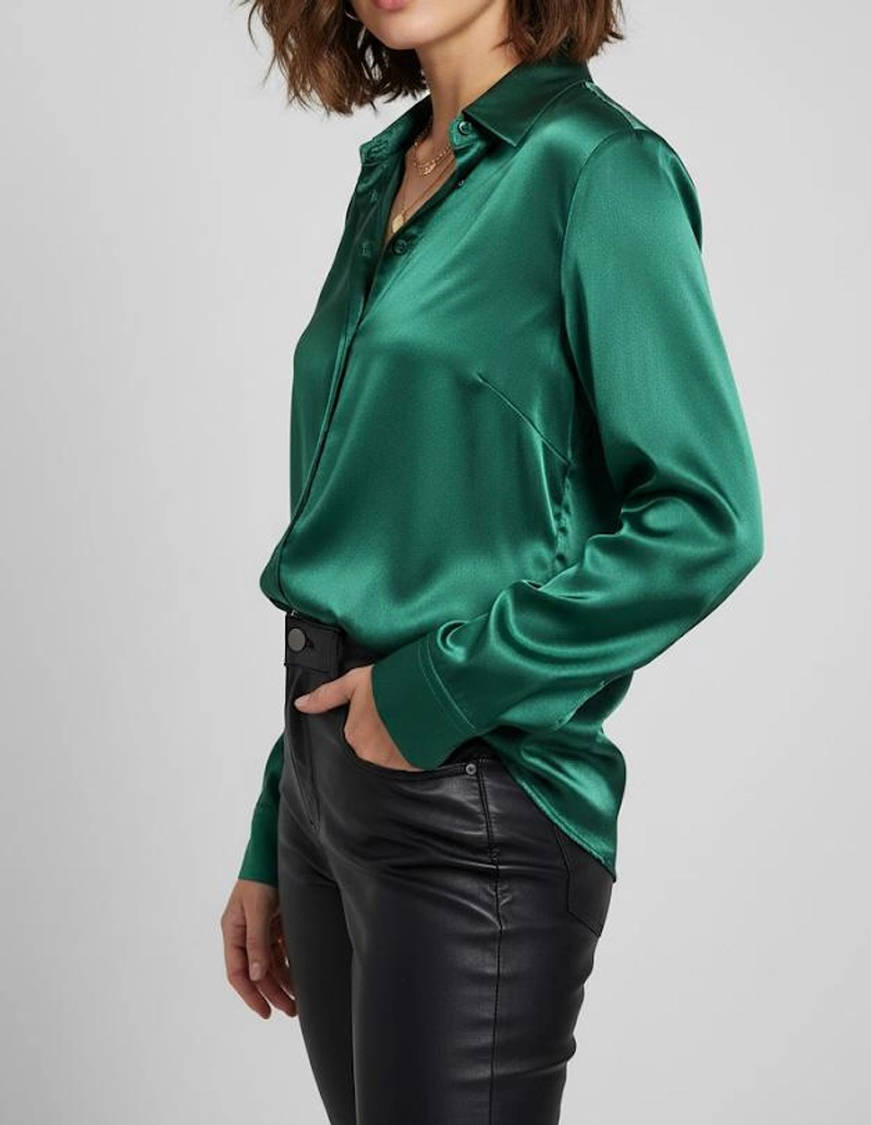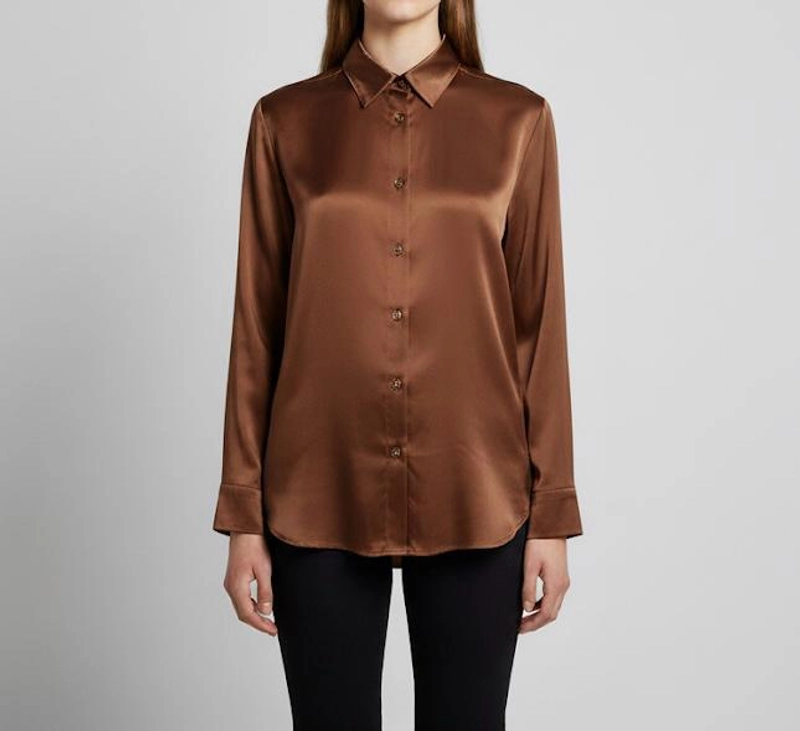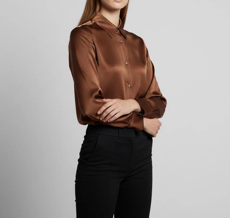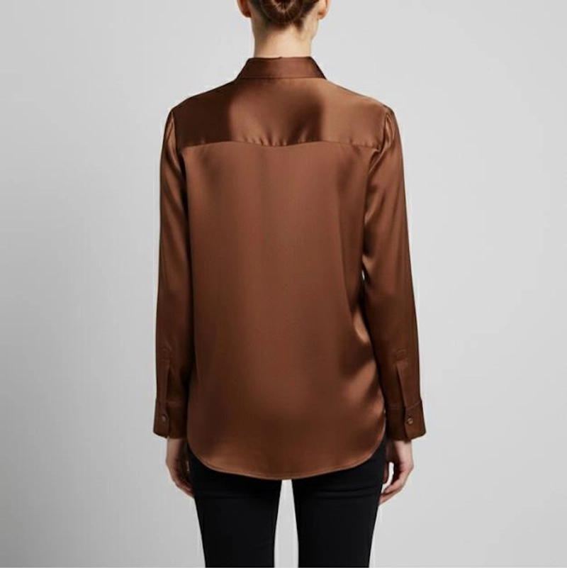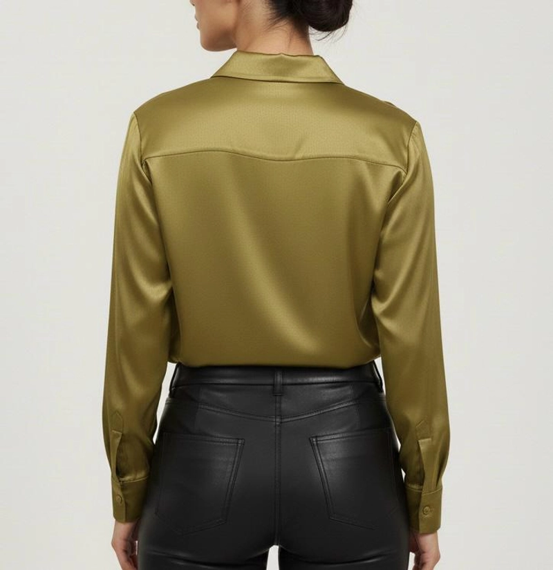 女式丝质触感奢华缎面衬衫-优雅长袖季节性衬衫
