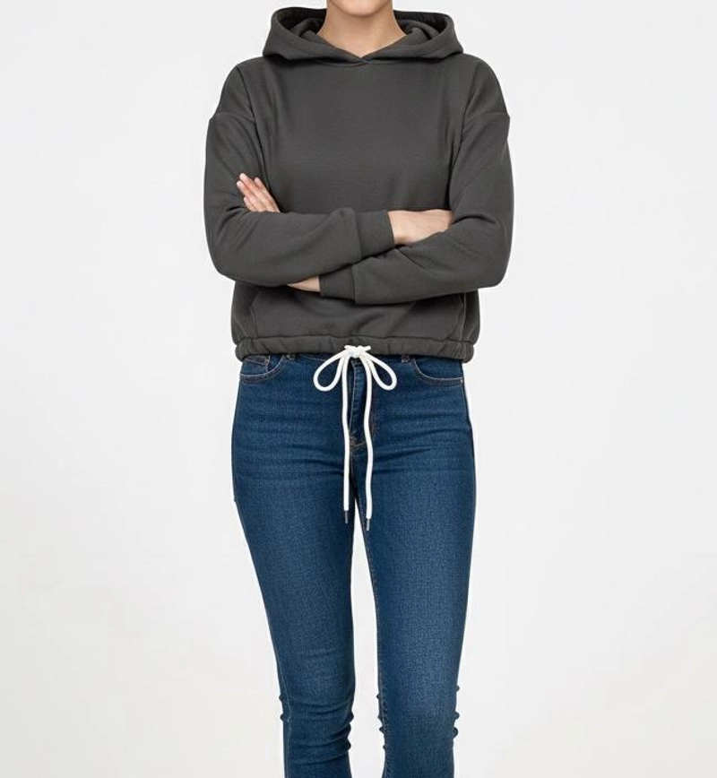 女士冬季 3 线拉绒抓绒保暖连帽卫衣(连帽衫),腰围可调拉绳