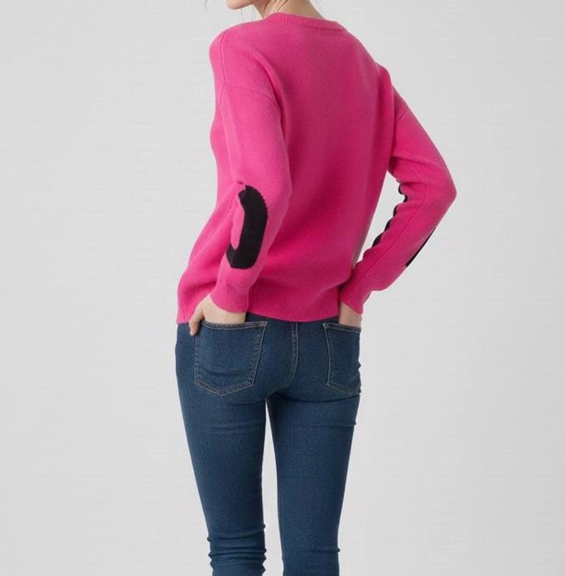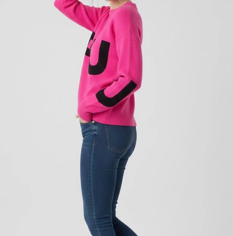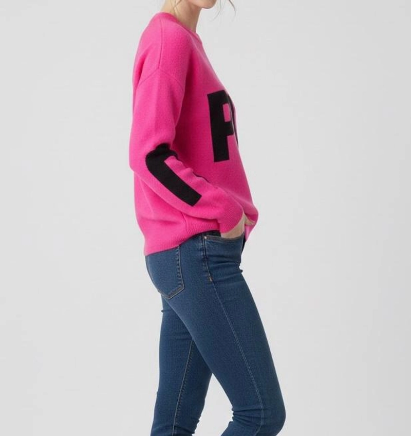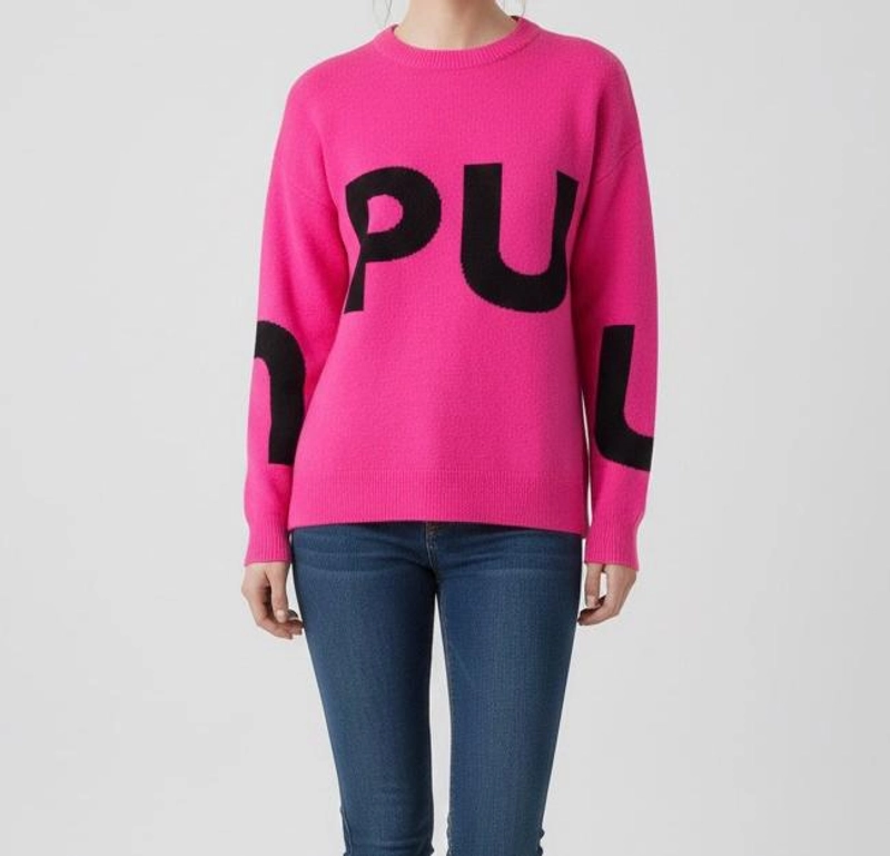 女士冬季厚针织粉色字母图案毛衣标准尺码保暖