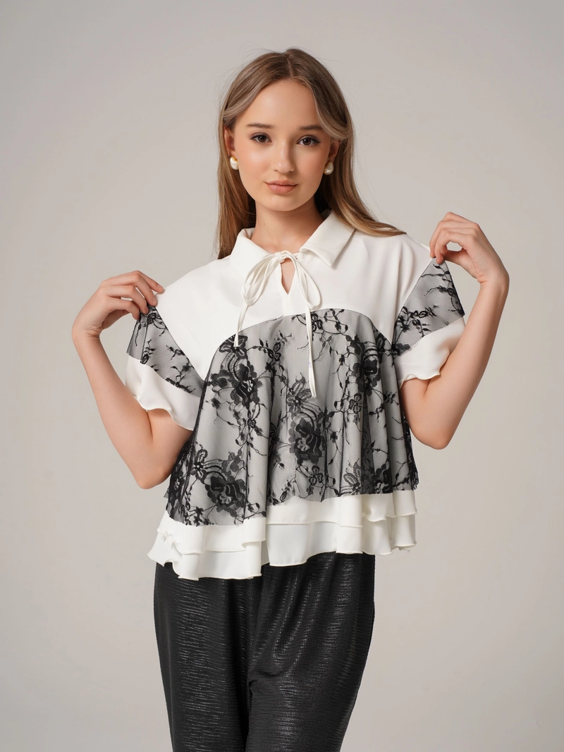Tatyna 女童露肩衬衫长款泡泡袖时尚学校和派对