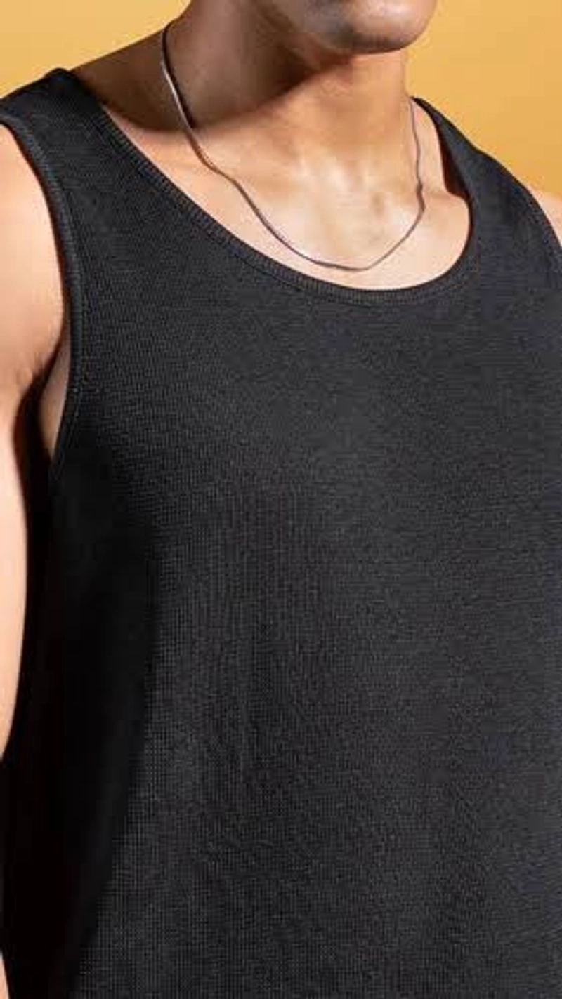 优质男士罗纹莱卡背心可拉伸、柔软、时尚合身