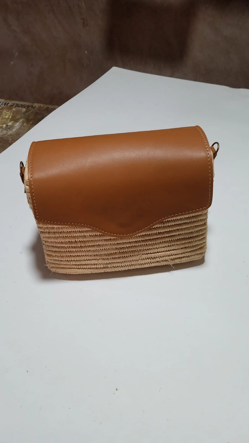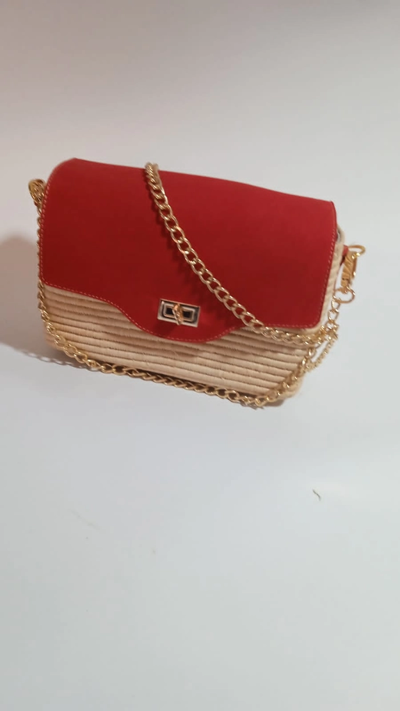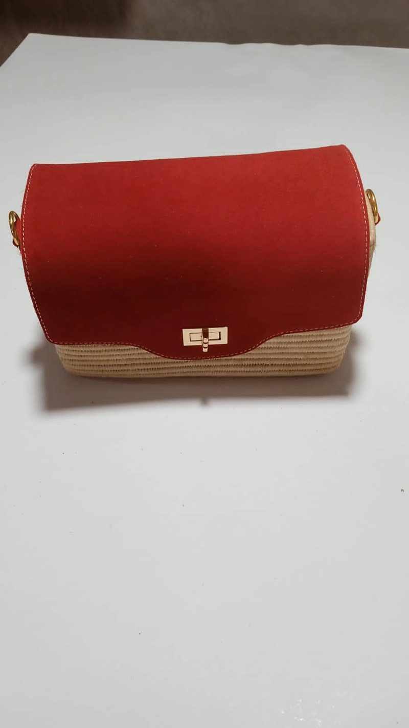 奢华夏季斜挎包—编织草编和红色绒面革混合媒体翻盖包
