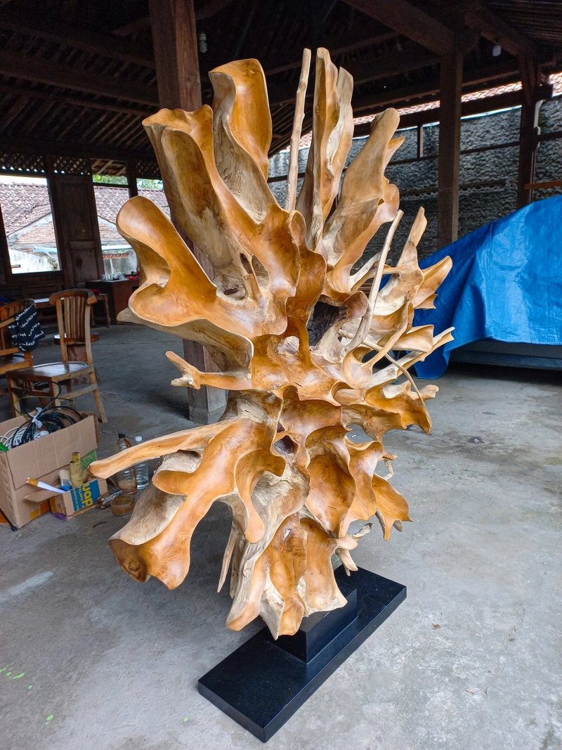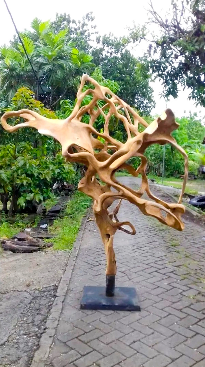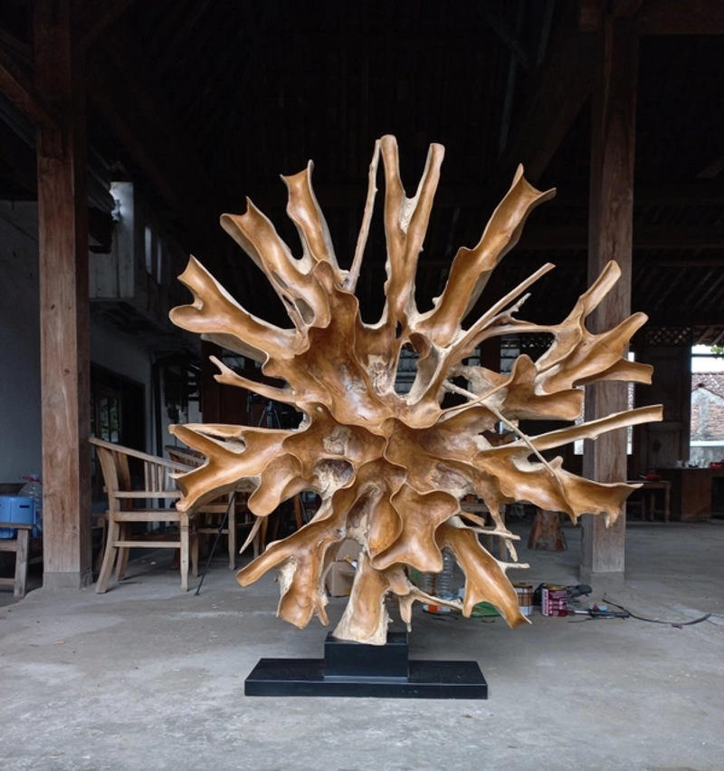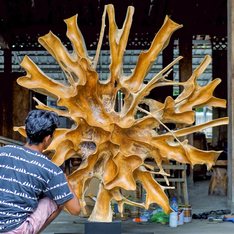 带支架的 3D 艺术柚木根雕塑装饰——雕刻柚木根墙装饰