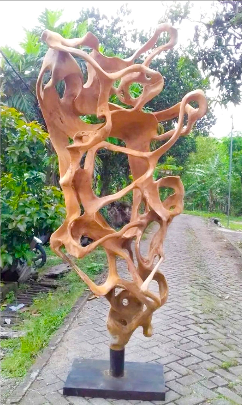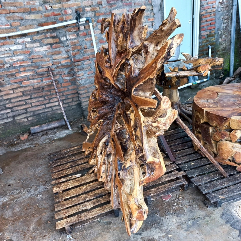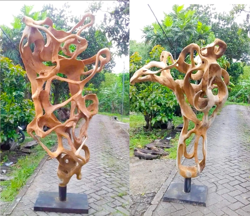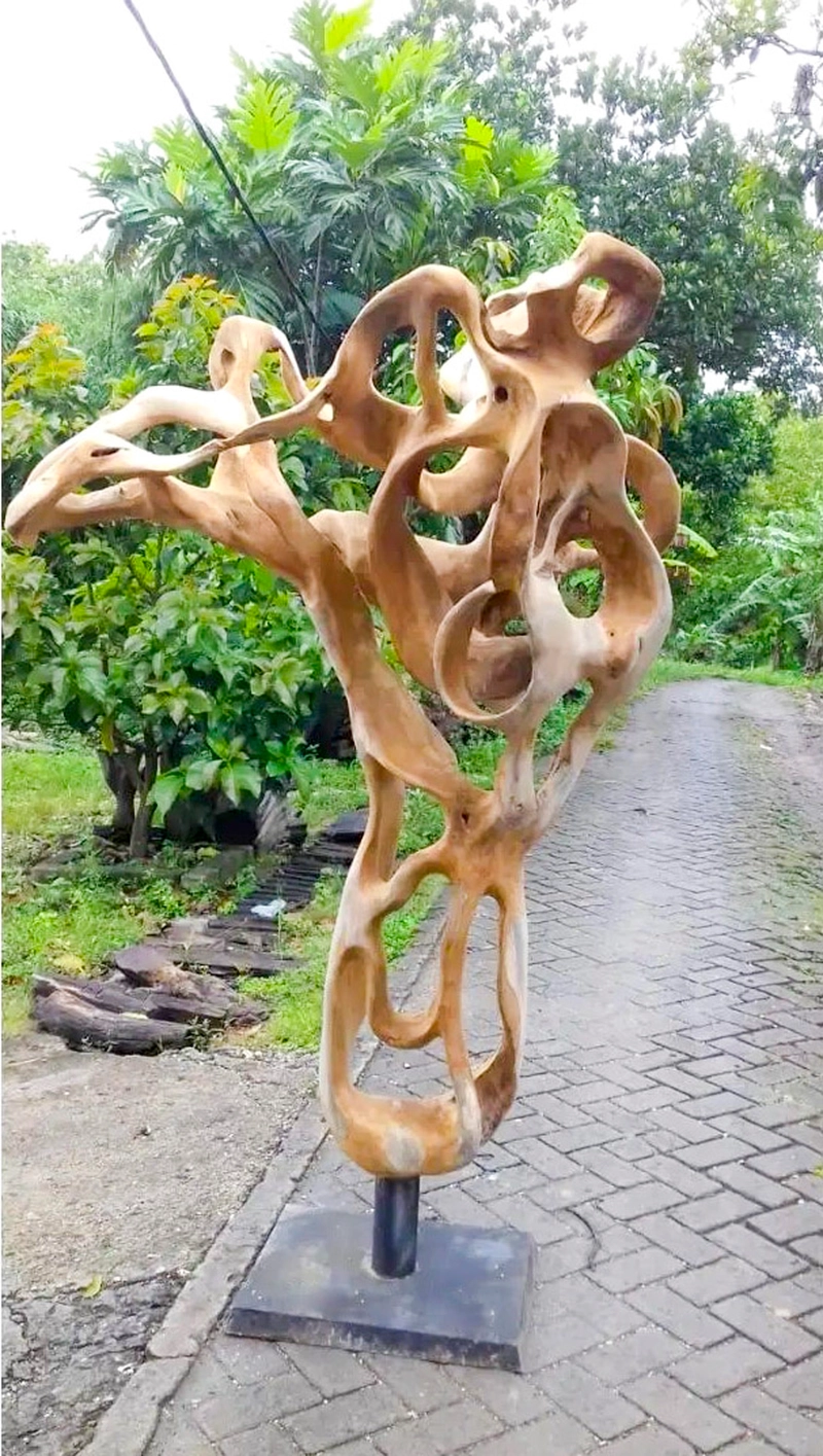 带支架的 3D 艺术柚木根雕塑装饰——雕刻柚木根墙装饰