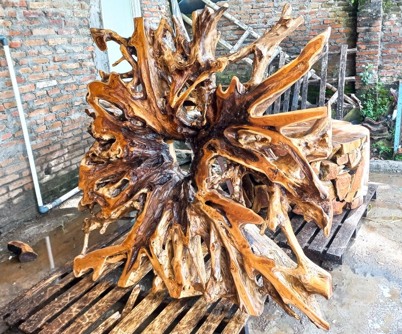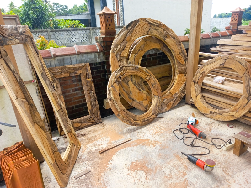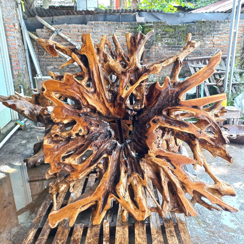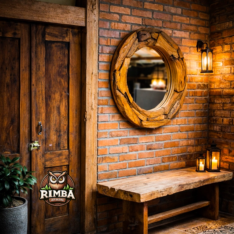 圆形柚木根镜 — 由 Rimba Jati Blora 导出