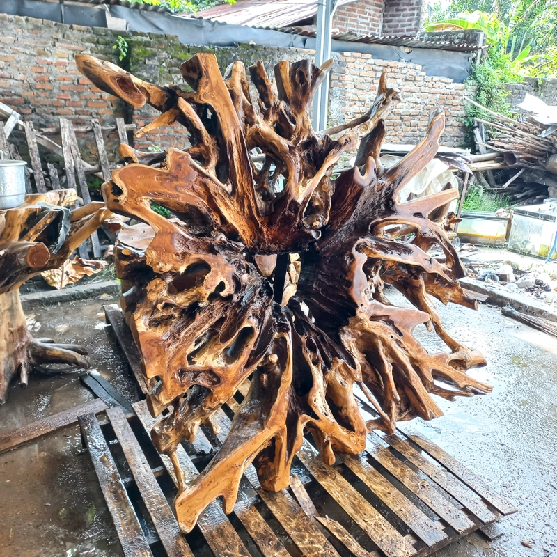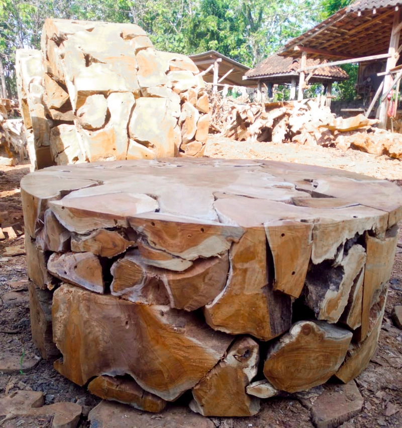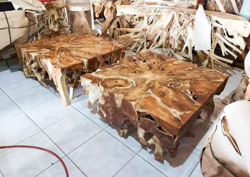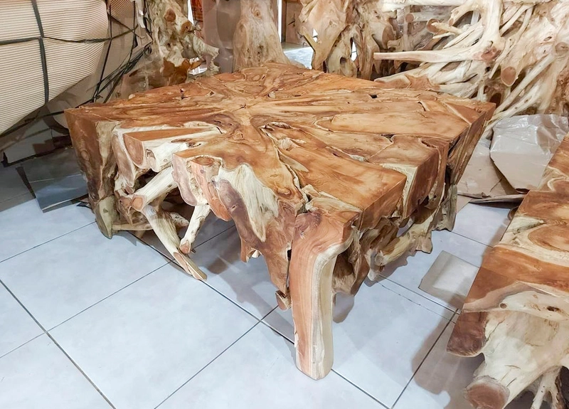 来自印度尼西亚的圆形柚木根木咖啡桌家具