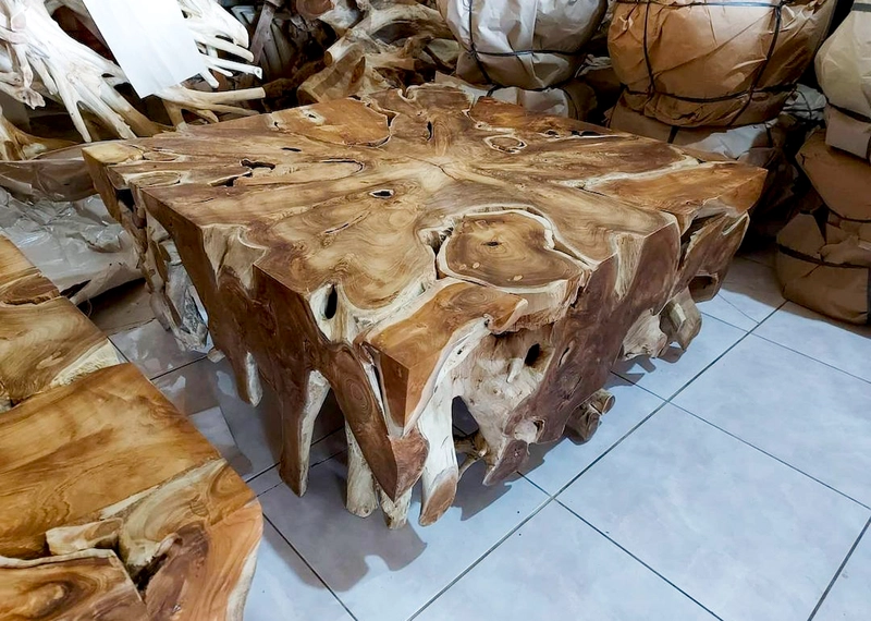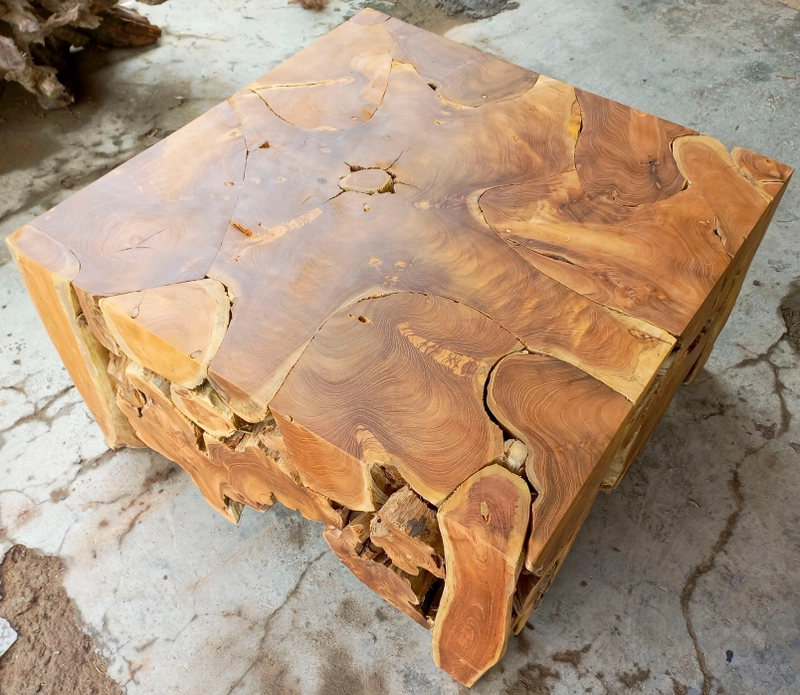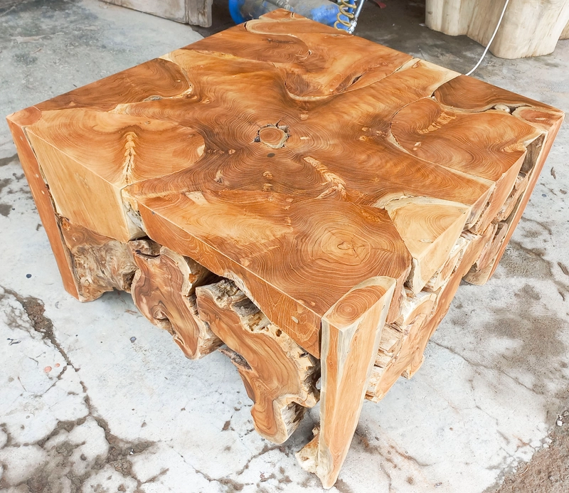 回收的方形柚木根咖啡桌家具