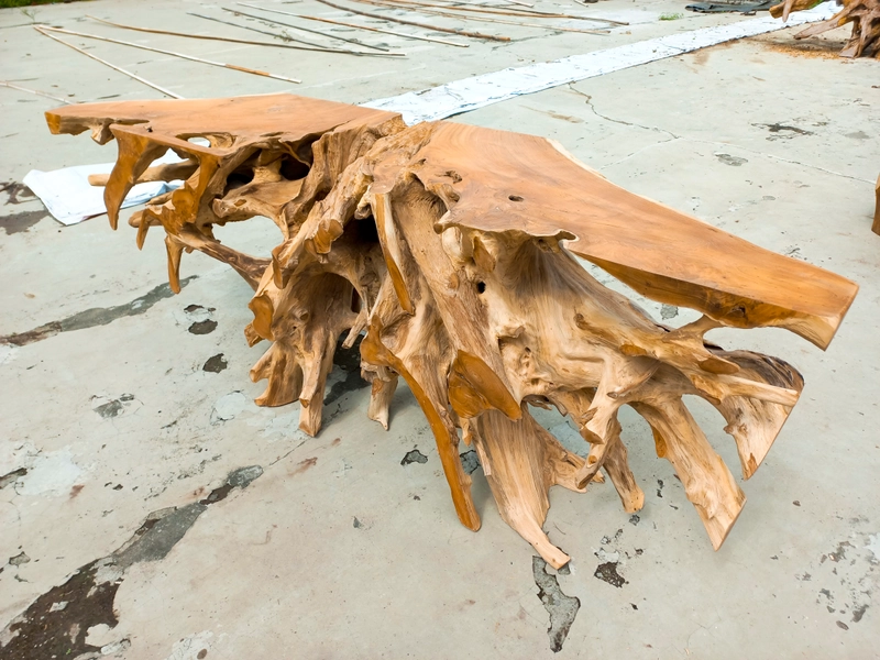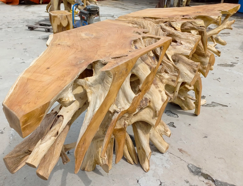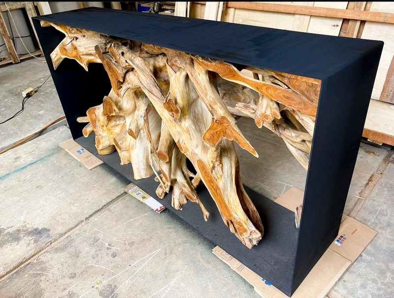 柚木根控制台桌由柚木根制成