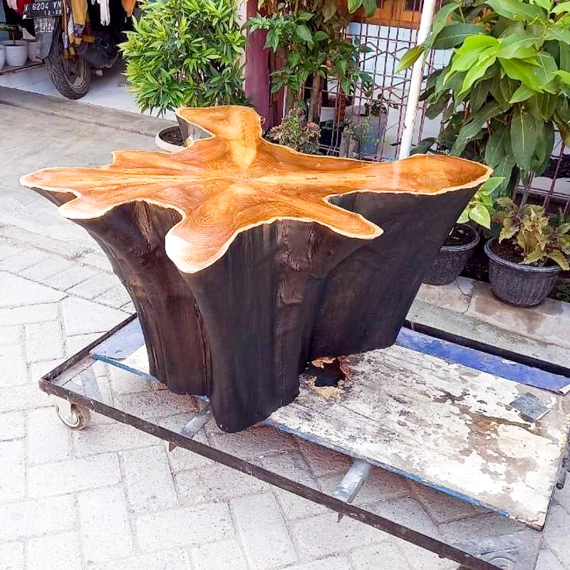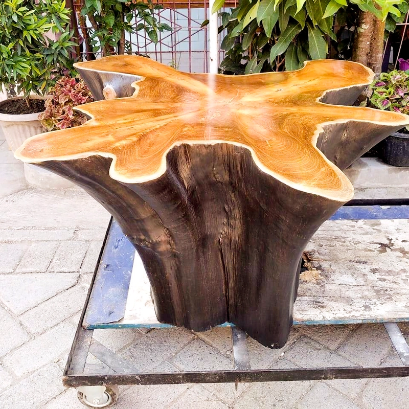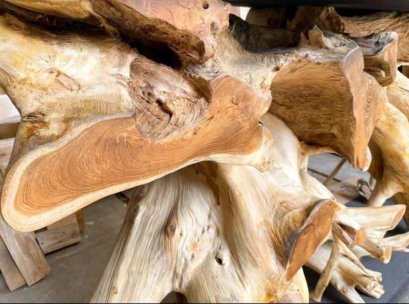 柚木根花卉餐桌印度尼西亚家具制造