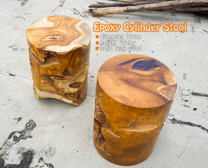 环氧柚木根边桌圆柱凳木