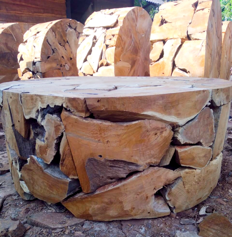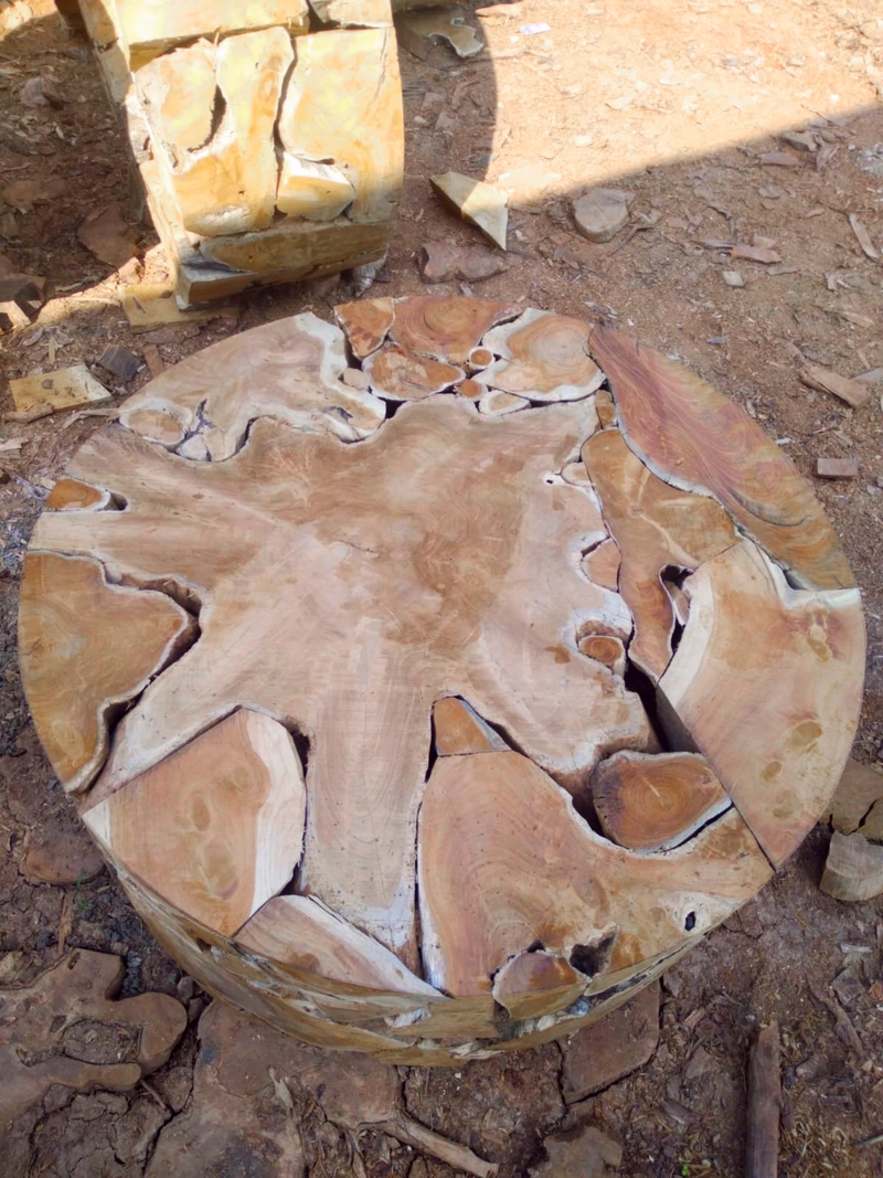 生态回收柚木根圆形咖啡桌