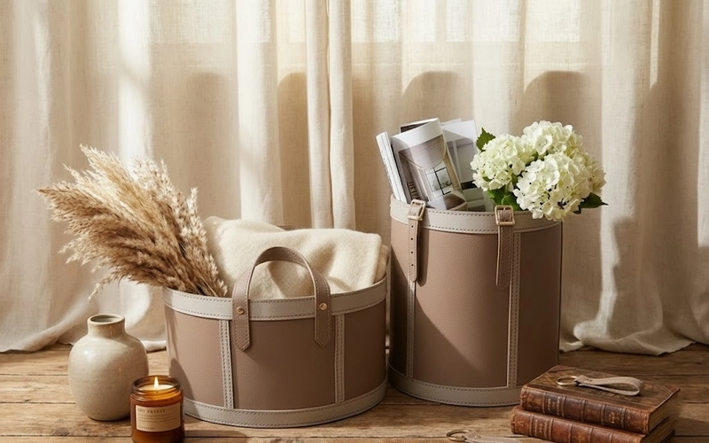 Gardin 皮革印花皮革储物篮
