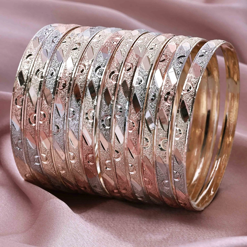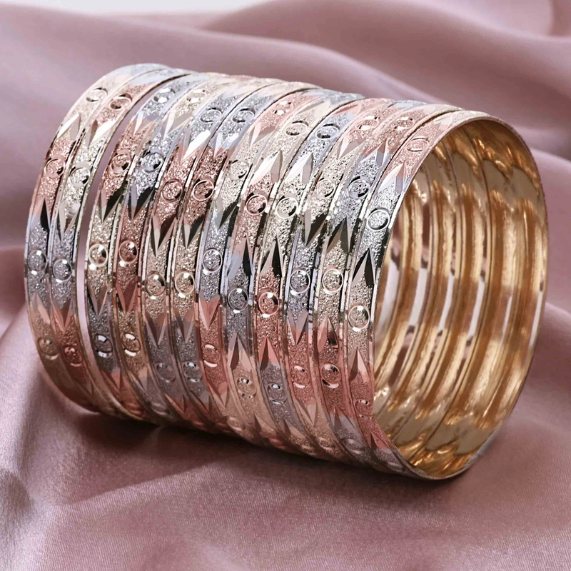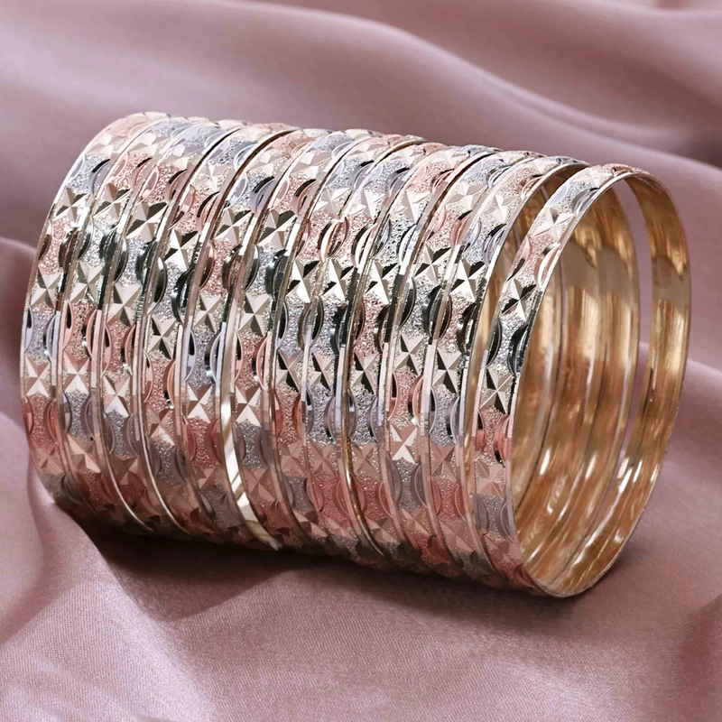 批发 3 色镀金成型手镯 | 多色金手镯 | 时尚珠宝 | 3 色手镯套装 | 三色手镯套装